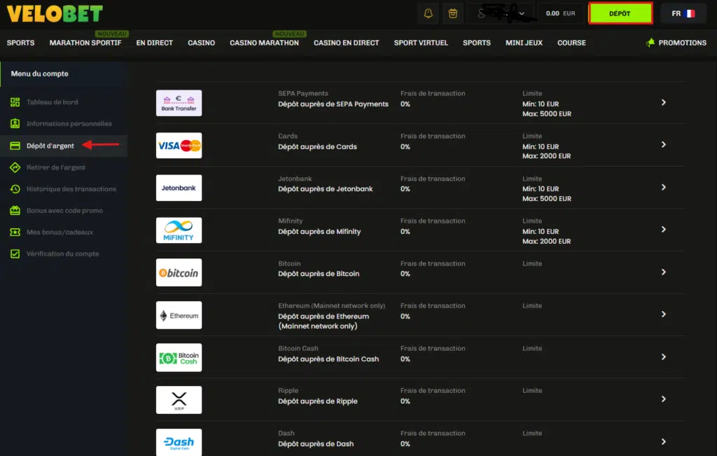 Le dépôt minimum est souvent 10 €, parfois plus si vous souhaitez certains bonus.